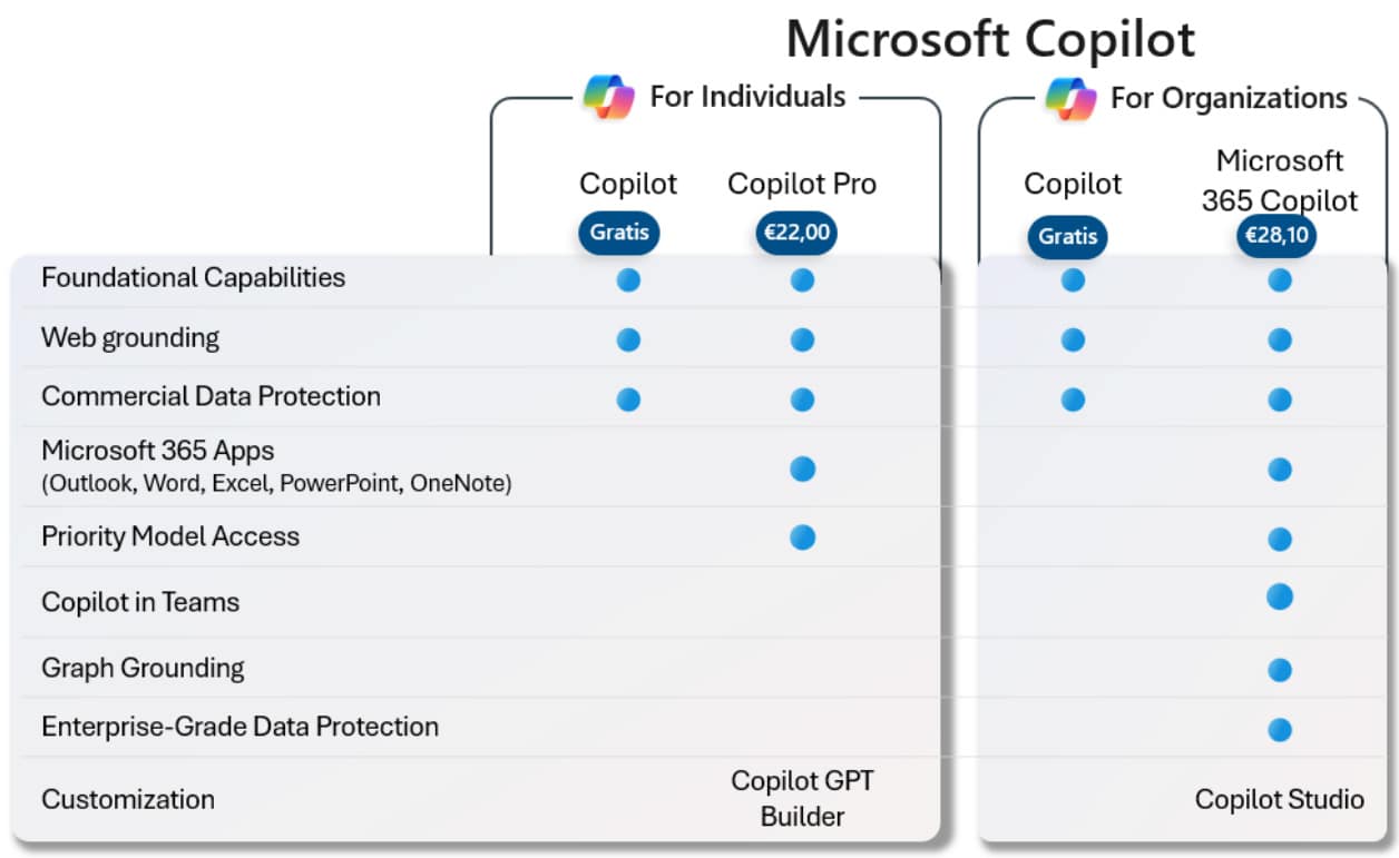 Microsoft Copilot licenties verschillenMicrosoft Copilot verschillen tussen licenties.