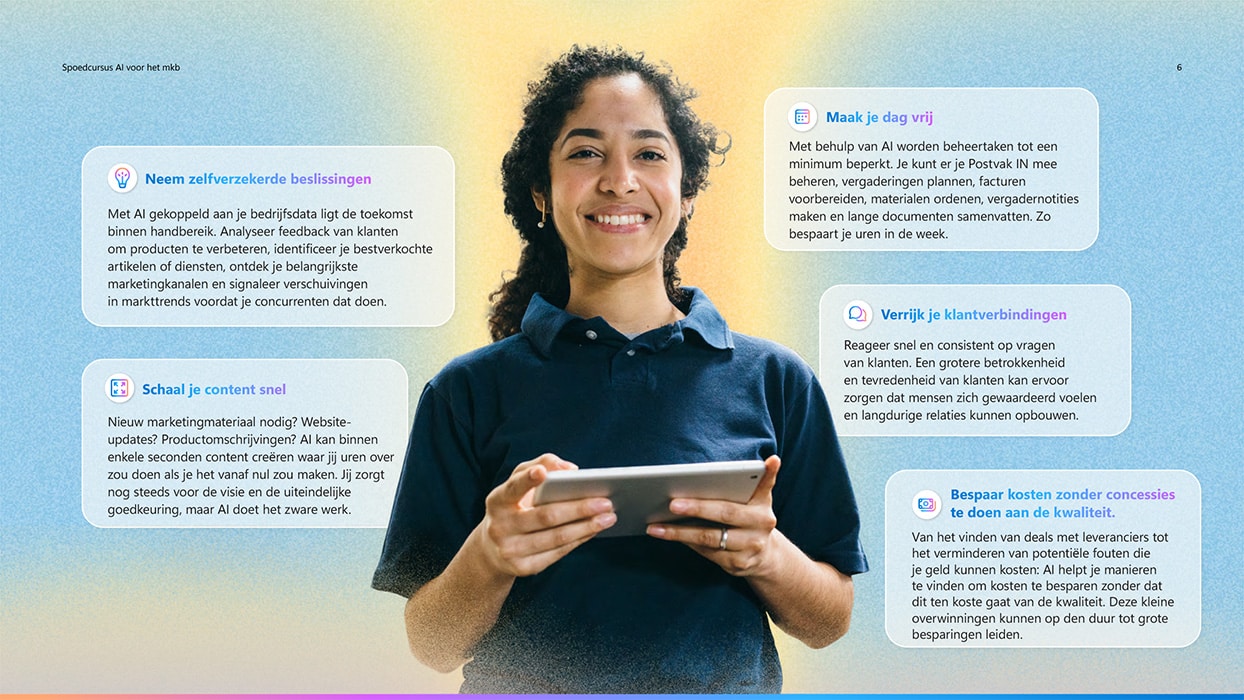 Deze handleiding helpt je om AI vol vertrouwen in te zetten, zodat je productiever bent en betere resultaten behaalt voor je bedrijf.